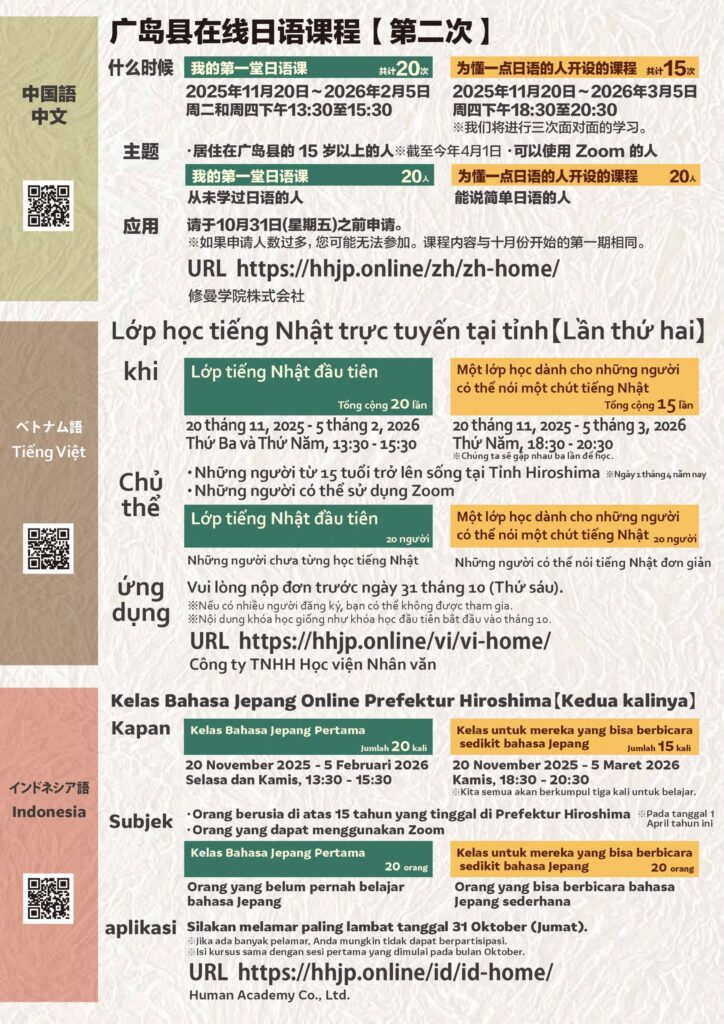 広島県は 11月から オンラインで 2回目の 地域日本語教室を はじめます。